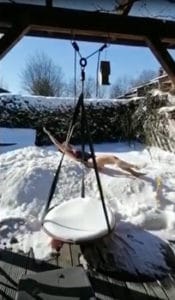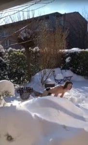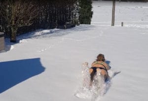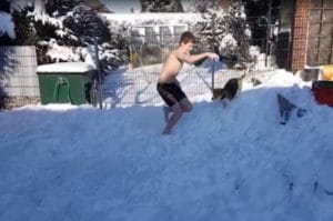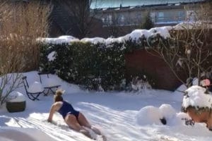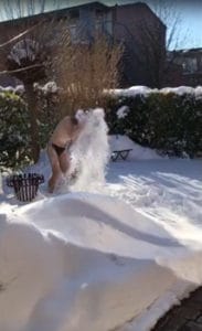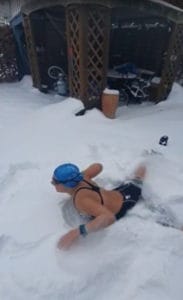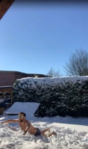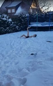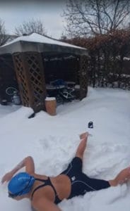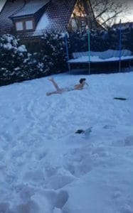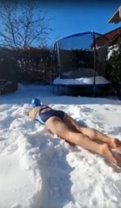 Da leider im Moment kein Training im Wasser möglich ist, machten zwei mutige Jungs aus dem Verein das Schwimmen im Schnee vor – die Mädels wollten dem natürlich nicht nachstehen. So sprangen sie alle in die Schneewehen und bewegten Arme und Beine in den verschiedenen Schwimmstilen.