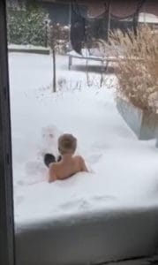 „Unglaublich mutig, Waaaahnsinn“ – das Schneebaden der Eltern und Kinder des Olfener Schwimmclubs.